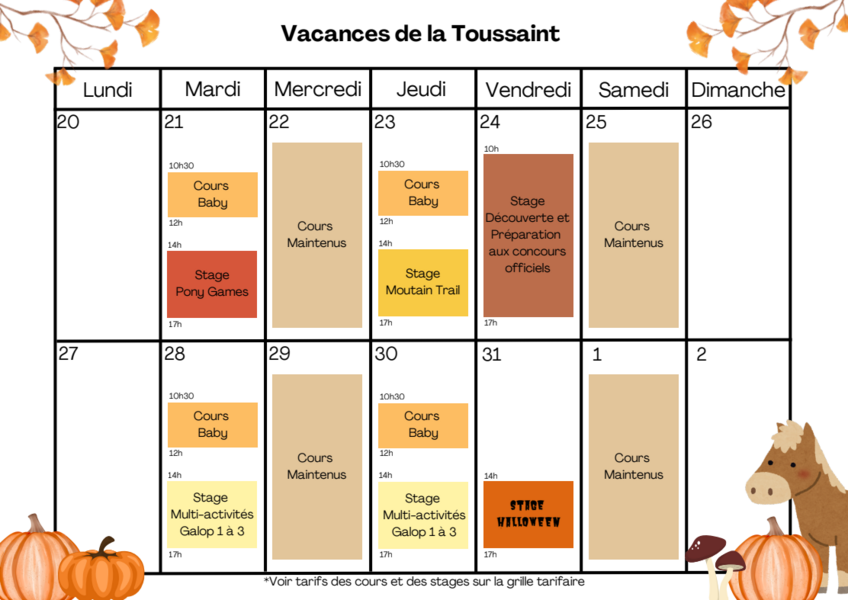 inscription sur le cahier pour les cavaliers du club ou auprès d’Yvon, Yvanne, Emmanuelle.